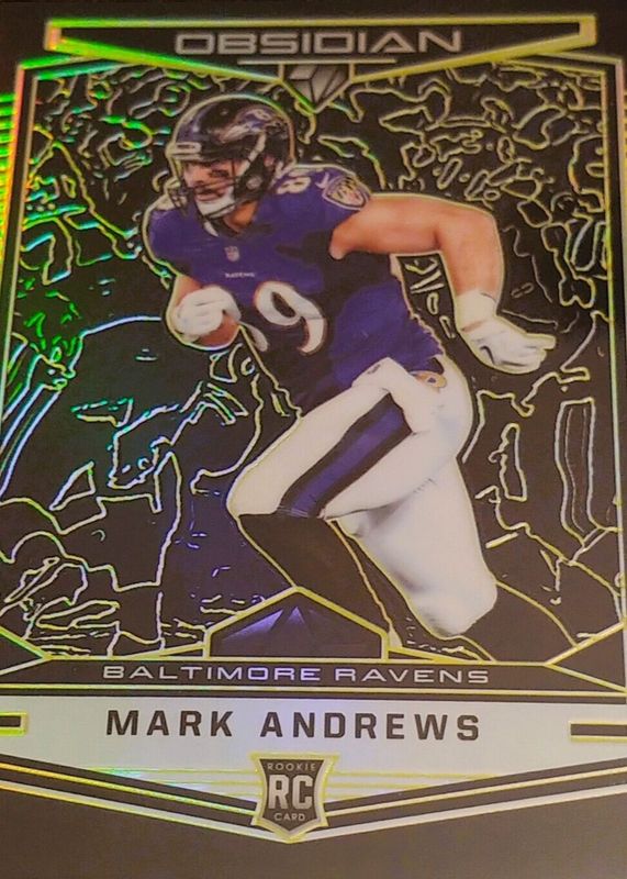 This card is 1 of 13 Mark Andrews' card variations in the 2018 Obsidian set being tracked by Sports Card Investor, including Base /100, Electric Etch Purple /75, Electric Etch Orange /50, Electric Etch Green /25, and Electric Etch Red /5.