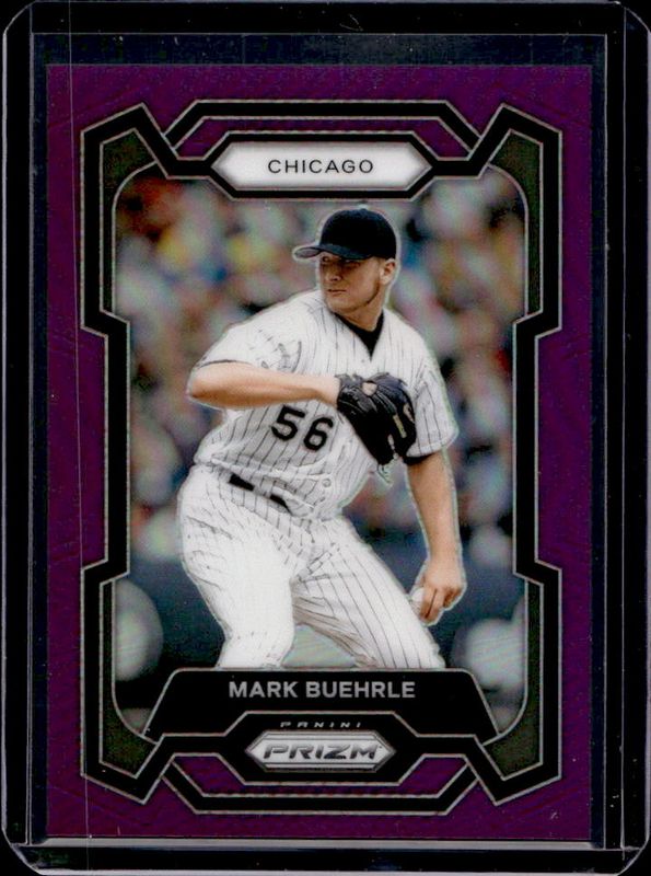 The Mark Buehrle 2024 Prizm #46 Purple /99 card is 1 of 30 Mark Buehrle's card variations in the 2024 Prizm set being tracked by Sports Card Investor, including Base, Blue Ice, Green, Green Ice, and Pink Ice.