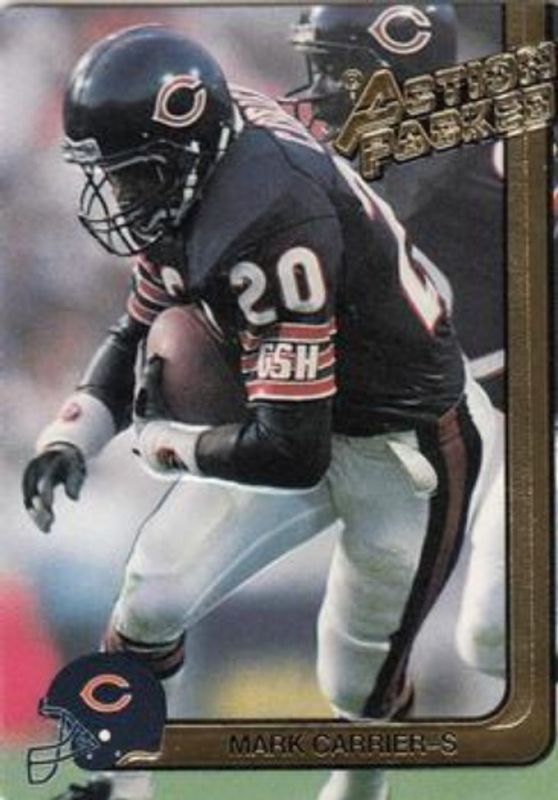 The Mark Carrier 1991 Action Packed #24 Base card is 1 of 3 Mark Carrier's card variations in the 1991 Action Packed set being tracked by Sports Card Investor, including Base, and 24K Gold.