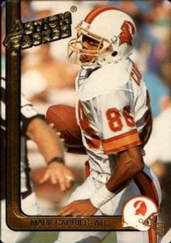 The Mark Carrier 1991 Action Packed #262 Base card is 1 of 3 Mark Carrier's card variations in the 1991 Action Packed set being tracked by Sports Card Investor, including Base, and 24K Gold.