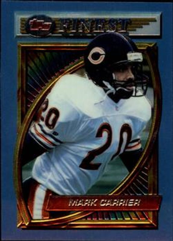 The Mark Carrier 1994 Topps Finest #185 Base card is 1 of 2 Mark Carrier's card variations in the 1994 Topps Finest set being tracked by Sports Card Investor, including Refractors.