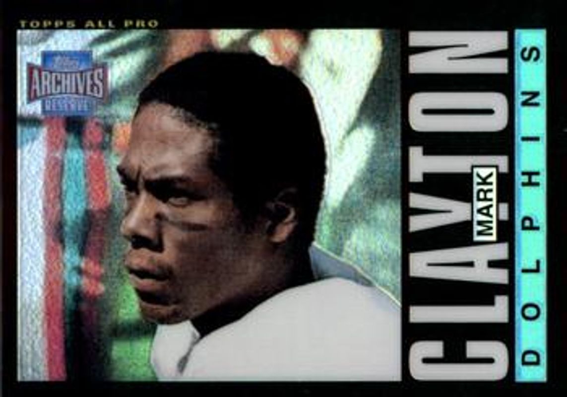 The Mark Clayton 2001 Topps Archives Reserve #56 Base card is 1 of 3 Mark Clayton's card variations in the 2001 Topps Archives Reserve set being tracked by Sports Card Investor, including Mini Helmet Autographs, and Rookie Reprint Autographs.