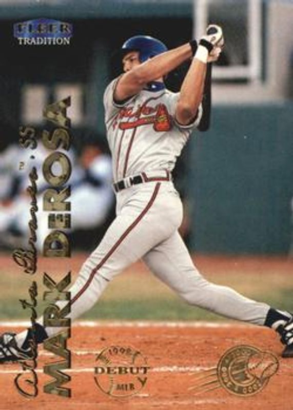 The Mark DeRosa 1999 Fleer Tradition #83 Millennium card is 1 of 4 Mark DeRosa's card variations in the 1999 Fleer Tradition set being tracked by Sports Card Investor, including Base, Warning Track Collection, and Starting 9 /9.