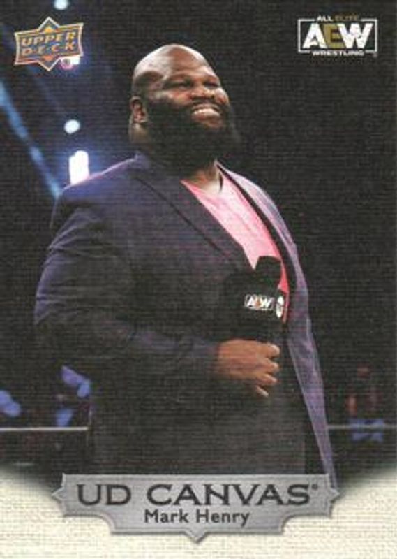 The Mark Henry 2022 Upper Deck AEW #C14 UD Canvas card is 1 of 41 Mark Henry's card variations in the 2022 Upper Deck AEW set being tracked by Sports Card Investor, including Base, Gold, Pyro, Silver Foil, and Green Pyro /399.