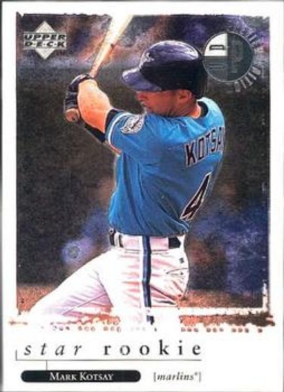 The Mark Kotsay 1998 Upper Deck #3 Rookie Edition Preview card is 1 of 4 Mark Kotsay's card variations in the 1998 Upper Deck set being tracked by Sports Card Investor, including Base, Blue Chip Prospects, and Destination Stardom.