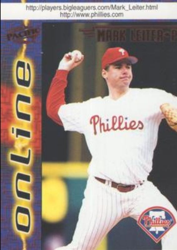 The Mark Leiter 1998 Pacific Online #565 Red card is 1 of 4 Mark Leiter's card variations in the 1998 Pacific Online set being tracked by Sports Card Investor, including Base, Base Winners, and Web Cards.