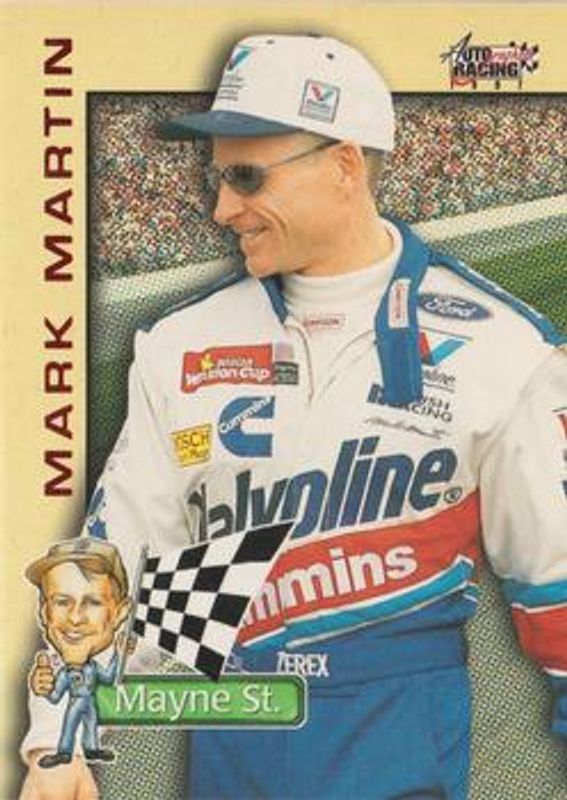 The Mark Martin 1997 Score Board Autographed #KM17 Mayne Street card is 1 of 6 Mark Martin's card variations in the 1997 Score Board Autographed set being tracked by Sports Card Investor, including #17 Base, #38 Base, #44 Base, Autographs, and #TF2 Take the Checkered Flag /325.