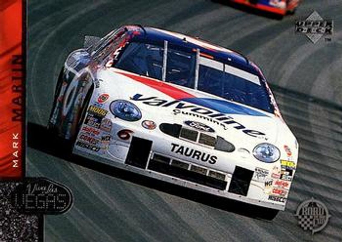 The Mark Martin 1998 Upper Deck Road to the Cup #100 Base card is 1 of 10 Mark Martin's card variations in the 1998 Upper Deck Road to the Cup set being tracked by Sports Card Investor, including #6 Base, #101 Base, #47 Base, #AN50 50th Anniversary, and #CQ6 CupQuest Turn 1 /4000.