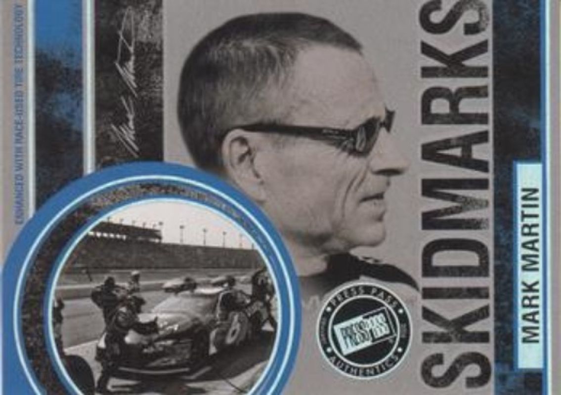 The Mark Martin 2006 Press Pass Eclipse #SM-8 Skidmarks - Holofoil /250 card is 1 of 17 Mark Martin's card variations in the 2006 Press Pass Eclipse set being tracked by Sports Card Investor, including #68 Base, #54 Base, #4 Base, #82 League Leaders, and Autographs.