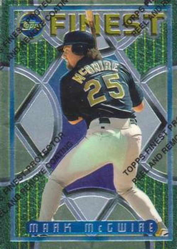 The Mark McGwire 1995 Topps Finest #169 Base card is 1 of 2 Mark McGwire's card variations in the 1995 Topps Finest set being tracked by Sports Card Investor, including Refractor.