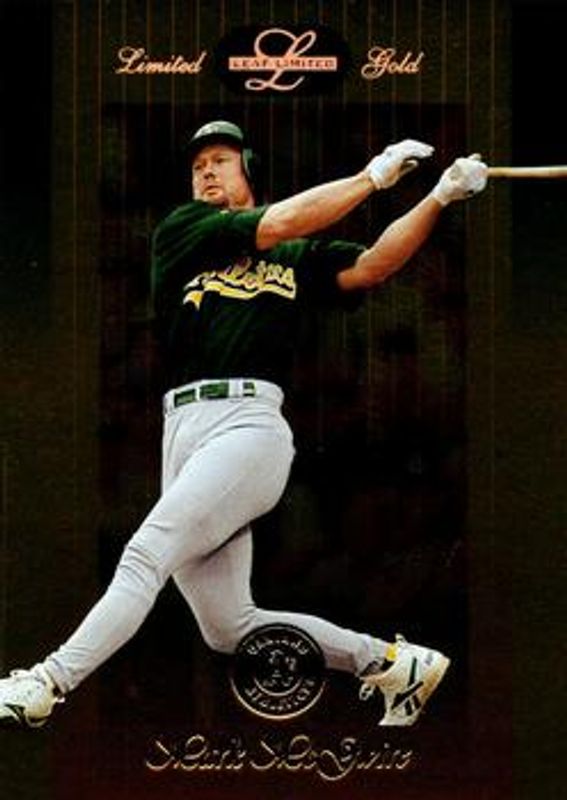 The Mark McGwire 1996 Leaf Limited #21 Gold card is 1 of 4 Mark McGwire's card variations in the 1996 Leaf Limited set being tracked by Sports Card Investor, including Base, Lumberjacks /5000, and Lumberjacks - Black /500.