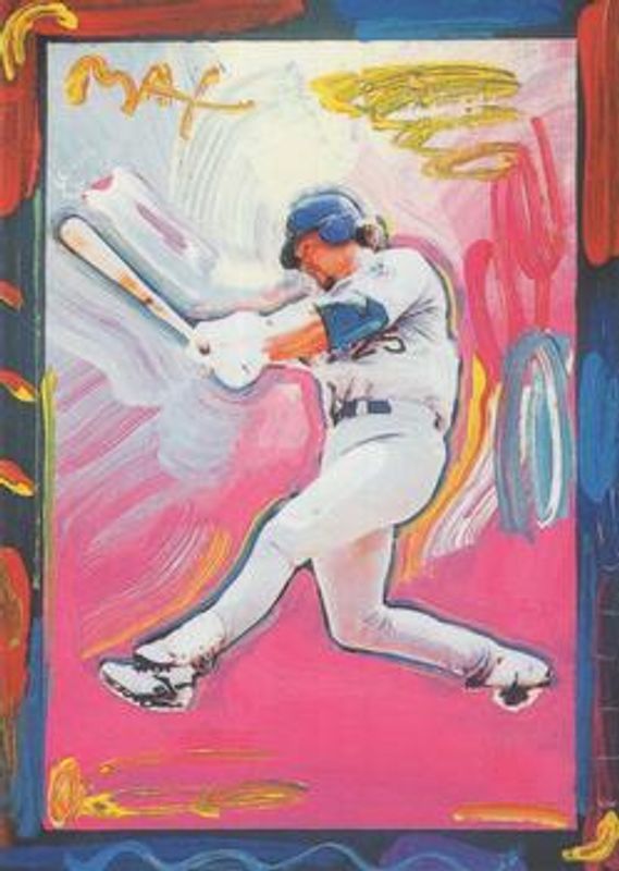 The Mark McGwire 1997 Topps Gallery #PM8 Peter Max card is 1 of 6 Mark McGwire's card variations in the 1997 Topps Gallery set being tracked by Sports Card Investor, including Base, Players Private Issue, Gallery of Heroes, Peter Max - Signature Series Serigraphs, and Photo Gallery.