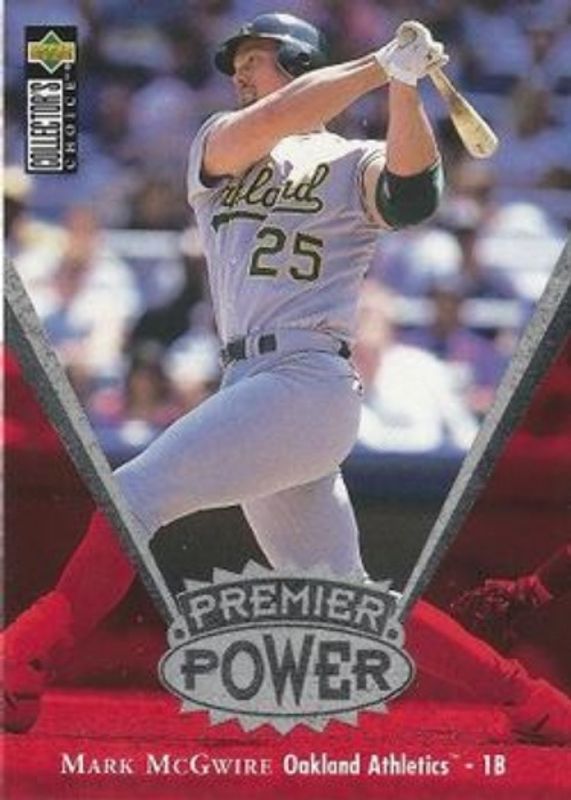 The Mark McGwire 1997 Upper Deck Collector's Choice #PP1 Premier Power card is 1 of 22 Mark McGwire's card variations in the 1997 Upper Deck Collector's Choice set being tracked by Sports Card Investor, including #330 Base, #190 Base, #1 All Star Connection, #330 Box Toppers, and #190 Box Toppers.