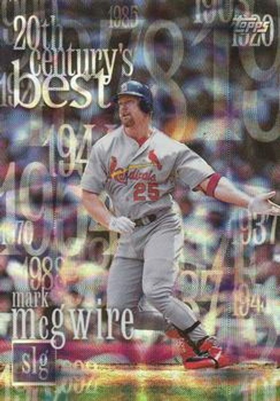 The Mark McGwire 2000 Topps #CB9 20th Century Best Sequential /339 card is 1 of 30 Mark McGwire's card variations in the 2000 Topps set being tracked by Sports Card Investor, including #1 Base, #456 Home Team Advantage, #1 Home Team Advantage, #236a Home Team Advantage, and #236b Home Team Advantage.
