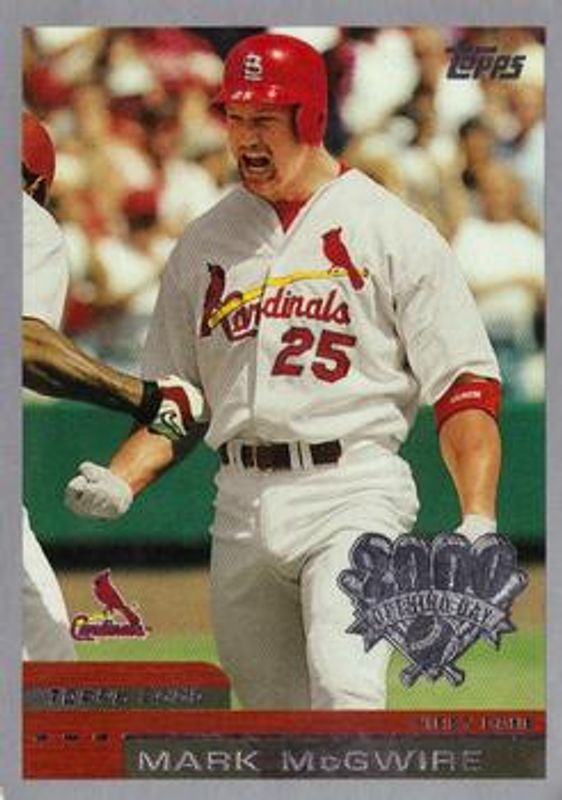 The Mark McGwire 2000 Topps Opening Day #1 Base card is 1 of 3 Mark McGwire's card variations in the 2000 Topps Opening Day set being tracked by Sports Card Investor, including #101 Base, and #105 Base.