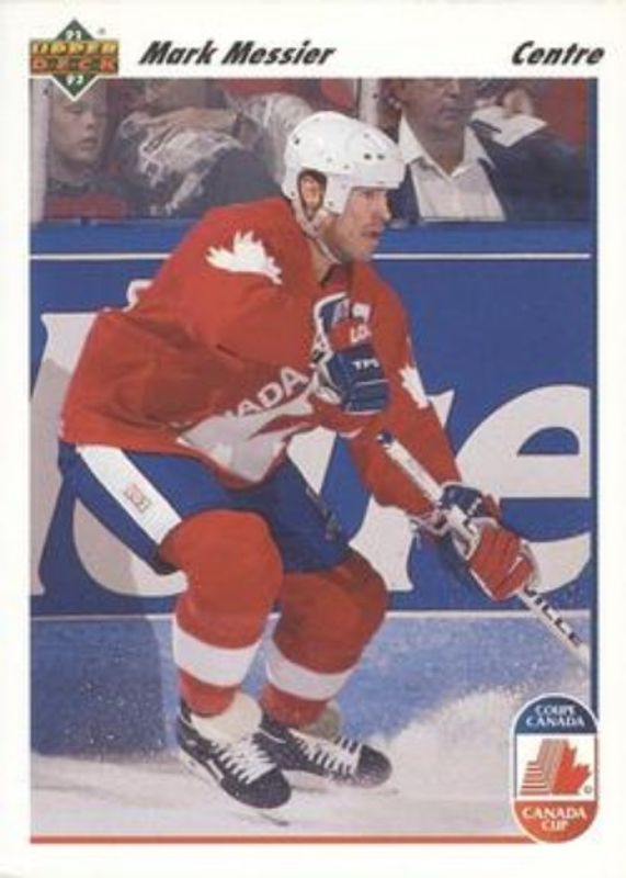 The Mark Messier 1991 Upper Deck French #14b Base card is 1 of 3 Mark Messier's card variations in the 1991 Upper Deck French set being tracked by Sports Card Investor, including Base, and Box Bottoms.