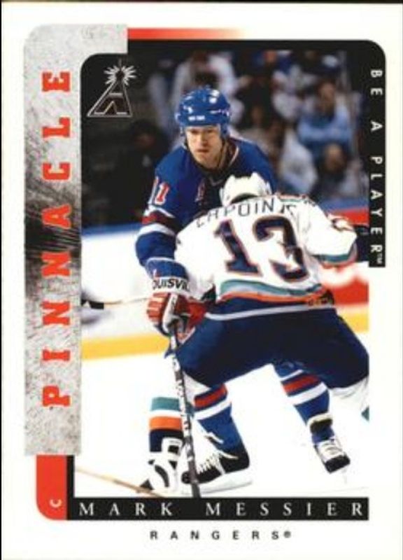 The Mark Messier 1996 Be A Player #111 Base card is 1 of 6 Mark Messier's card variations in the 1996 Be A Player set being tracked by Sports Card Investor, including #111 Autograph, #111 Autographs - Silver, #19 Biscuit in the Basket, #1 Mark Messier Die-Cut Autographed /11, and #2 Mark Messier Die-Cut Autographed /11.