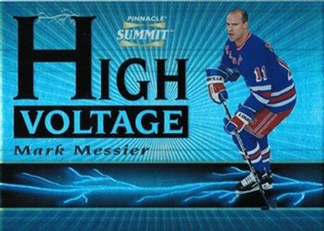 The Mark Messier 1996 Pinnacle Summit #1 High Voltage /1500 card is 1 of 12 Mark Messier's card variations in the 1996 Pinnacle Summit set being tracked by Sports Card Investor, including #111 Base, #198 Base, #111 Artist's Proofs, #198 Artist's Proofs, and #198 Ice.