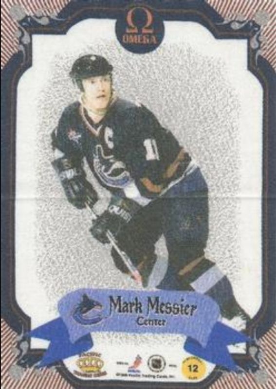 The Mark Messier 1997 Pacific Omega #12 Silks card is 1 of 10 Mark Messier's card variations in the 1997 Pacific Omega set being tracked by Sports Card Investor, including Base, Copper, Dark Gray, Emerald Green, and Gold.