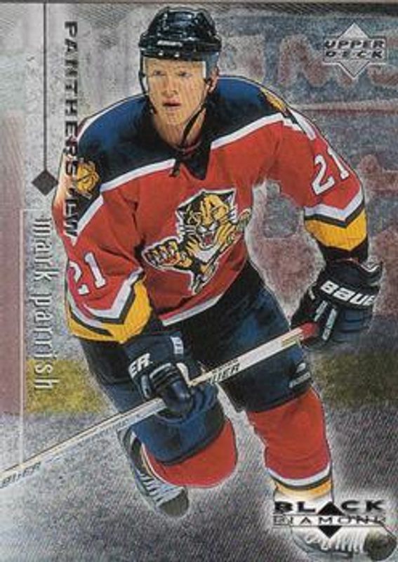 The Mark Parrish 1998 Upper Deck Black Diamond #38 Base Rookie card is 1 of 6 Mark Parrish's card variations in the 1998 Upper Deck Black Diamond set being tracked by Sports Card Investor, including Double Diamond /2000, Triple Diamond /1000, Quadruple Diamond /100, Myriad /1500, and Myriad 2 /1.