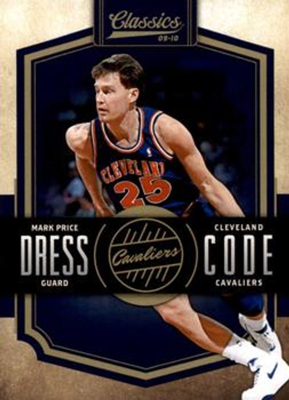 The Mark Price 2009 Classics #19 Dress Code - Gold /100 card is 1 of 13 Mark Price's card variations in the 2009 Classics set being tracked by Sports Card Investor, including Base /999, Timeless Tributes Silver /100, Timeless Tributes Gold /50, Timeless Tributes Platinum /25, and Dress Code.