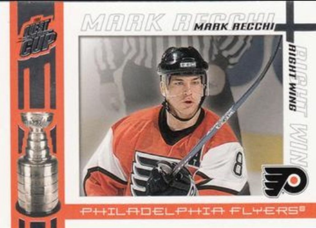 The Mark Recchi 2003 Pacific Quest for the Cup #79 Base /950 card is 1 of 2 Mark Recchi's card variations in the 2003 Pacific Quest for the Cup set being tracked by Sports Card Investor, including Blue /150.
