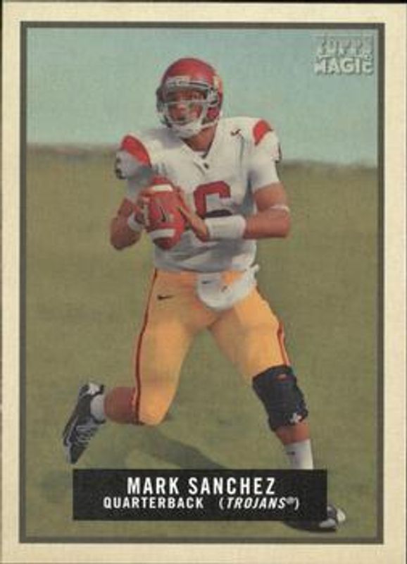The Mark Sanchez 2009 Topps Magic #144 Base Rookie card is 1 of 6 Mark Sanchez's card variations in the 2009 Topps Magic set being tracked by Sports Card Investor, including Mini, Mini Black, 1948 Magic, Autographs, and Thrills.