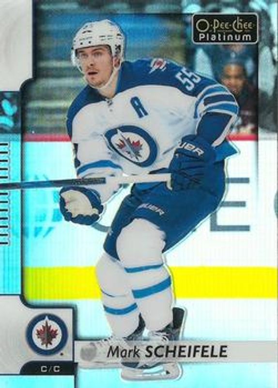The Mark Scheifele 2017 O-Pee-Chee Platinum #54 Rainbow card is 1 of 20 Mark Scheifele's card variations in the 2017 O-Pee-Chee Platinum set being tracked by Sports Card Investor, including Base, Violet Pixels, Red Prism /199, Royal Blue Cubes /99, and Seismic Gold /50.