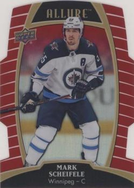 The Mark Scheifele 2019 Upper Deck Allure #41 Red Rainbow card is 1 of 27 Mark Scheifele's card variations in the 2019 Upper Deck Allure set being tracked by Sports Card Investor, including Base, Pewter, White Rainbow, Yellow Taxi, and Orange Slice /199.