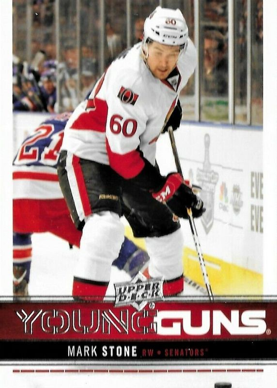 Mark Stone's Hockey cards are available in at least 158 sets. Mark Stone's biggest 7-day price movers are 2012 Upper Deck #239 Young Guns Base, 2012 SP Authentic #229 Future Watch Auto /999, and 2016 Fleer Showcase #56 White Hot /5.