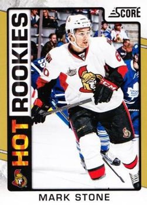 The Mark Stone 2012 Score #548 Gold Rush Rookie card is 1 of 4 Mark Stone's card variations in the 2012 Score set being tracked by Sports Card Investor, including Base, Black Ice, and Rookie Autographs.
