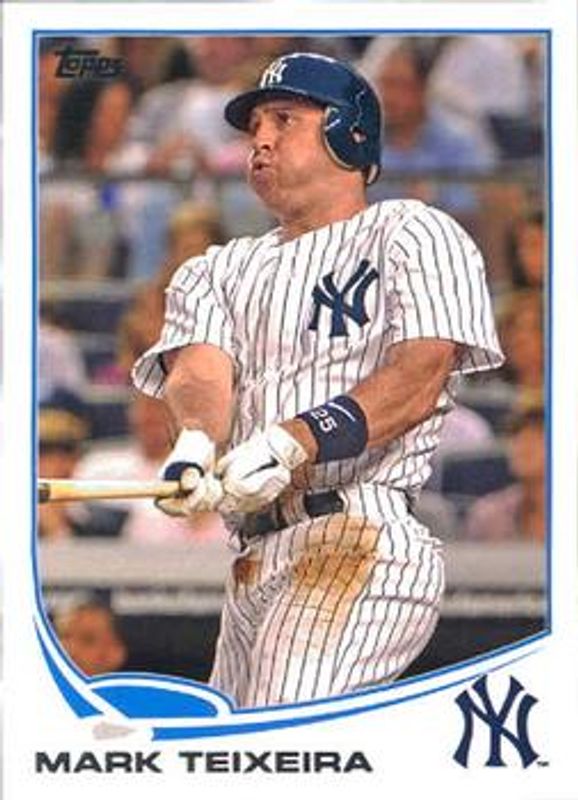 The Mark Teixeira 2013 Topps #25 Base card is 1 of 22 Mark Teixeira's card variations in the 2013 Topps set being tracked by Sports Card Investor, including 1972 Topps Minis, Calling Cards, Silk Collection /50, Calling Cards Relics /25, and Blue.