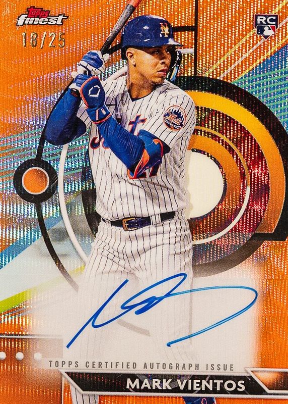 The Mark Vientos 2023 Topps Finest #FA-MVI Finest Autographs - Orange Wave Refractor /25 Rookie card in Raw condition has not changed in price in the last 30 days and was last sold for $49.99 .