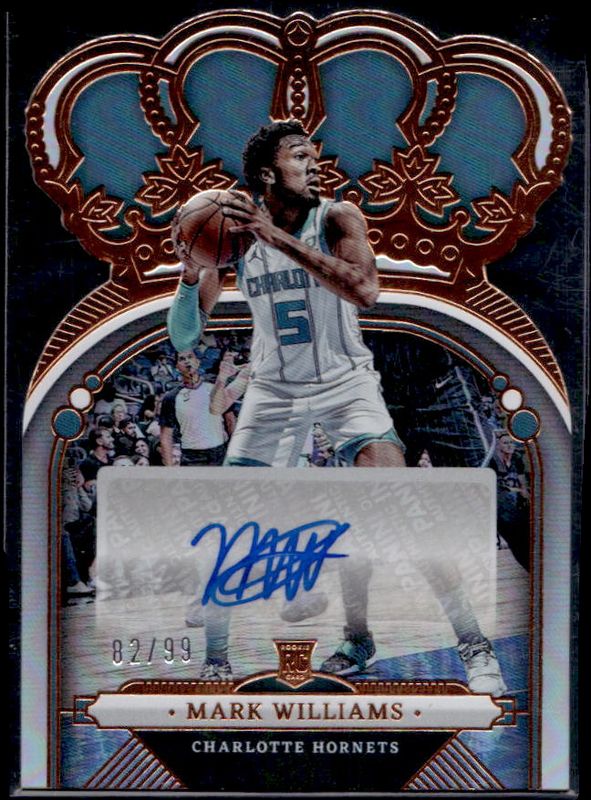 The Mark Williams 2022 Crown Royale #RCA-MKW Rookie Crown Autographs /99 card is 1 of 28 Mark Williams' card variations in the 2022 Crown Royale set being tracked by Sports Card Investor, including Heirs to the Throne, Rookie Royalty - Asia Red, Rookie Silhouettes /199, Rookie Royalty /99, and Rookie Crown Autographs - Blue /75.