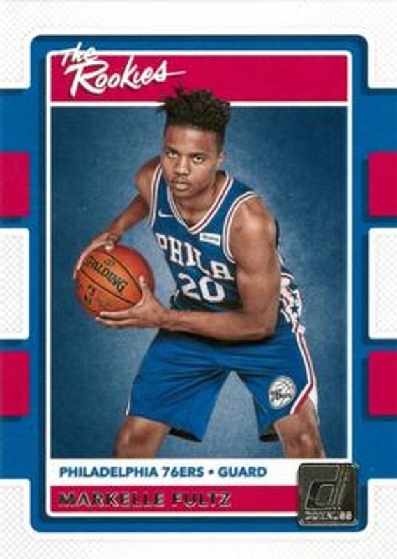 The Markelle Fultz 2017 Donruss #1 The Rookies card is 1 of 41 Markelle Fultz's card variations in the 2017 Donruss set being tracked by Sports Card Investor, including Base, Green Flood, Holo Green & Yellow Laser, Holo Orange Laser, and Press Proof Silver /299.