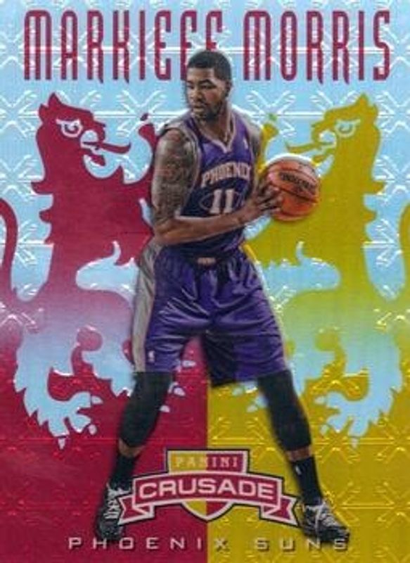 The Markieff Morris 2012 Crusade #65 Prizm Red & Gold /99 Rookie card is 1 of 8 Markieff Morris' card variations in the 2012 Crusade set being tracked by Sports Card Investor, including Prizm Blue & Gold, Prizm Purple & Gold /49, Prizm Green & Gold /25, Prizm Gold /10, and Prizm Black /1.