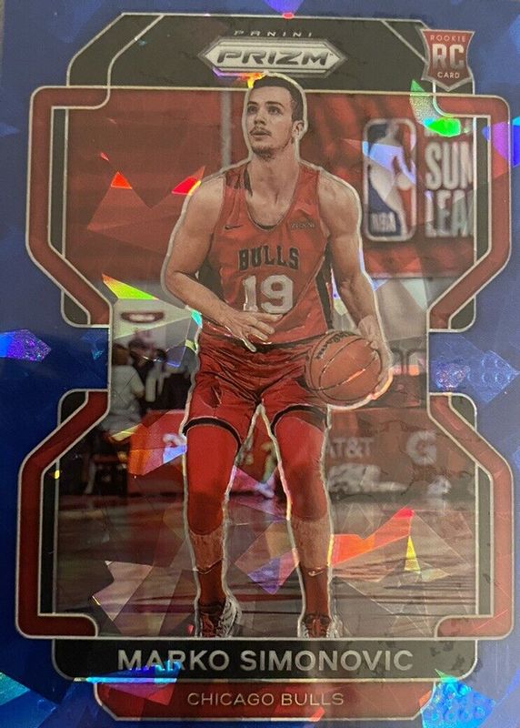 2021-22 Panini Prizm Marko Simonovic Blue Cracked Ice RC 005/125 Bulls