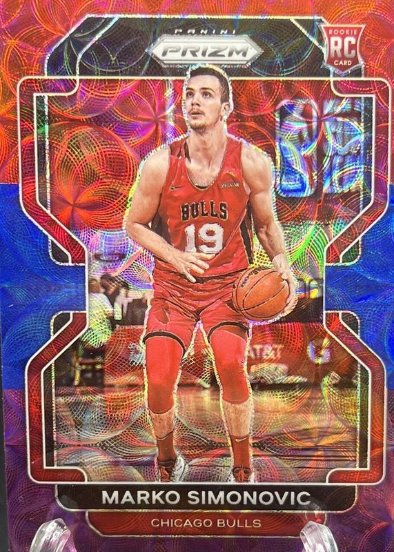 The Marko Simonovic 2021 Prizm #166 Choice Red Blue & Purple /15 Rookie card in Raw condition has not changed in price in the last 30 days and was last sold for $2.50 .