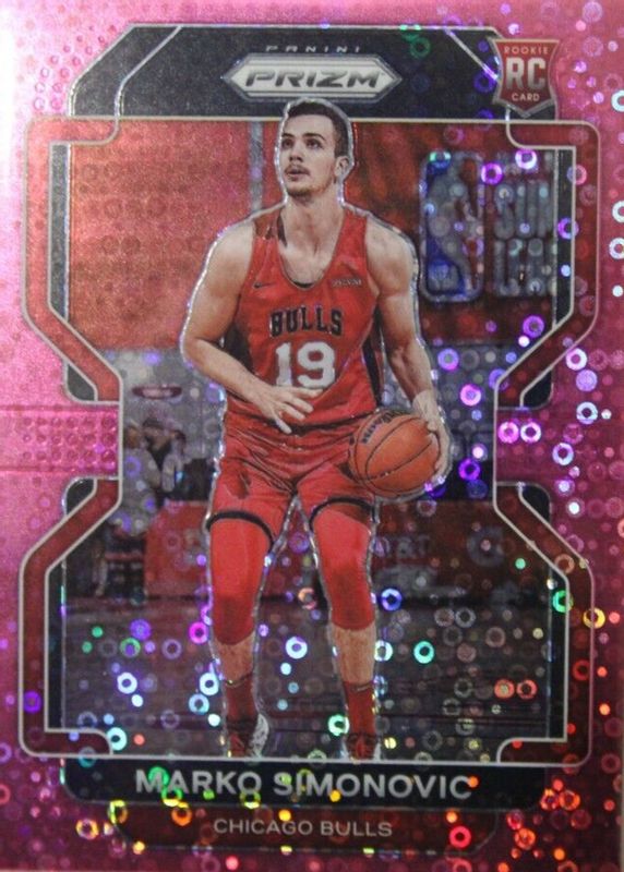 The Marko Simonovic 2021 Prizm #166 Fast Break Pink /50 Rookie card in Raw condition has not changed in price in the last 30 days and was last sold for $2.25 .