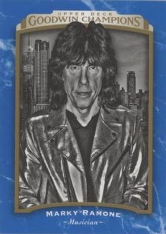 The Marky Ramone 2017 Upper Deck Goodwin Champions #148 Royal Blue card is 1 of 54 Marky Ramone's card variations in the 2017 Upper Deck Goodwin Champions set being tracked by Sports Card Investor, including #148 Base, #98 Base, #48b Base, #48 Base, and Blank Back Mini.