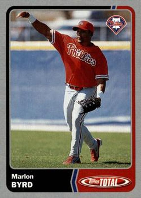 The Marlon Byrd 2003 Topps Total #743 Silver card is 1 of 3 Marlon Byrd's card variations in the 2003 Topps Total set being tracked by Sports Card Investor, including Base, and Signatures.