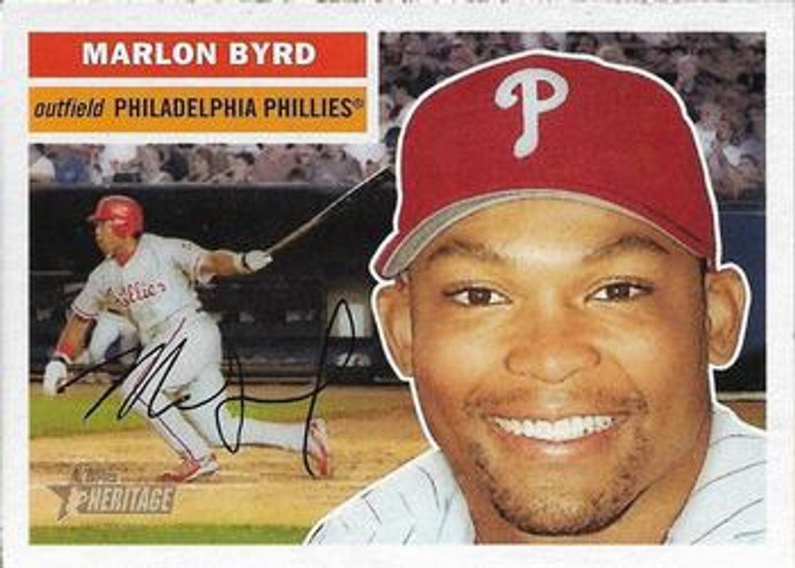 The Marlon Byrd 2005 Topps Heritage #291b Base card is 1 of 2 Marlon Byrd's card variations in the 2005 Topps Heritage set being tracked by Sports Card Investor, including Base.