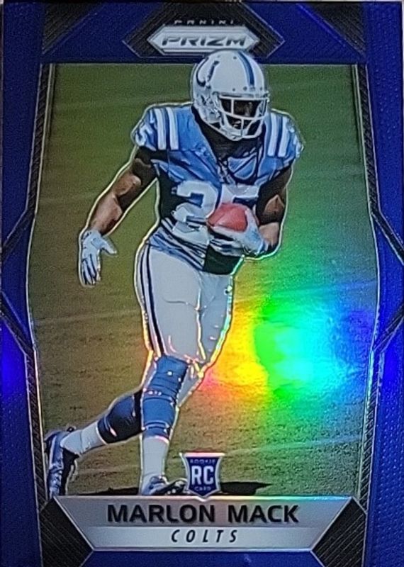Marlon Mack's Football cards are available in at least 50 sets. Marlon Mack's biggest 7-day price movers are 2017 Prizm #287 Blue /(SSP), 2017 Contenders #314 Rookie Ticket Auto, and 2017 Prizm #287 Green.