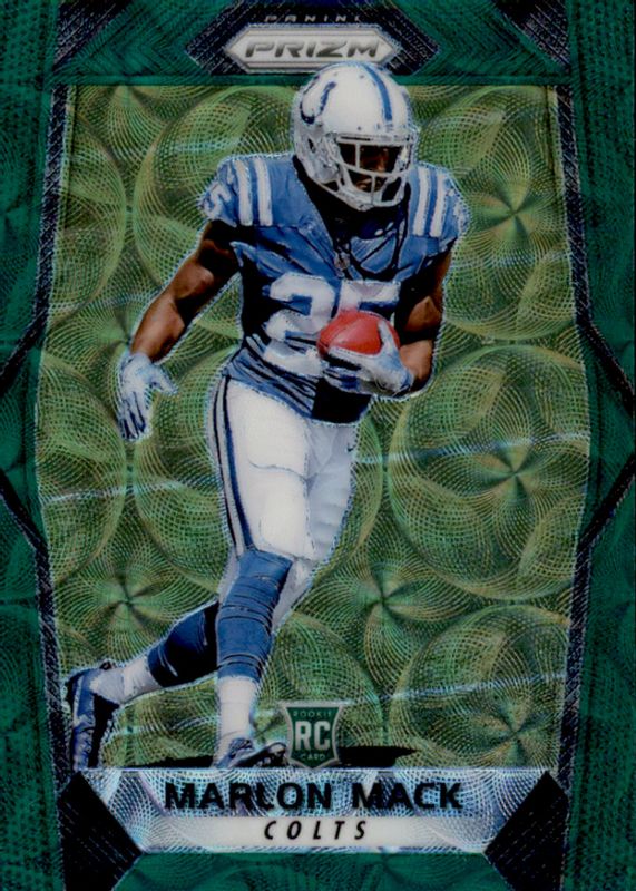 This card is 1 of 19 Marlon Mack's card variations in the 2017 Prizm set being tracked by Sports Card Investor, including Disco, Green, Pink, Red White Blue, and Silver.