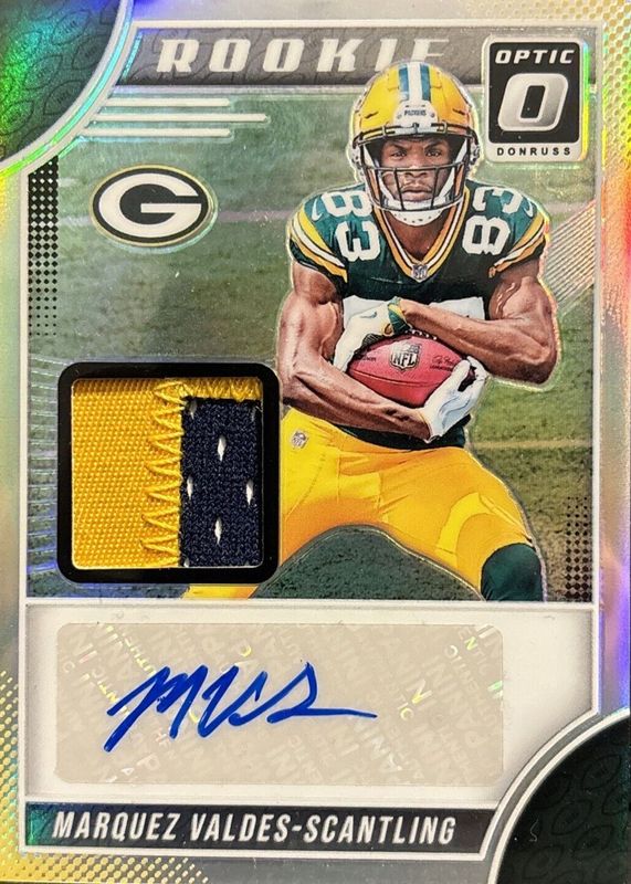 The Marquez Valdes-Scantling 2018 Optic #RPA-MS Rookie Patch Auto (/35) card in Raw condition has not changed in price in the last 30 days and was last sold for $13.37 .