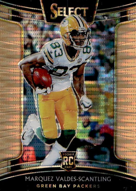 This card is 1 of 27 Marquez Valdes-Scantling's card variations in the 2018 Select set being tracked by Sports Card Investor, including Concourse, Premier Level, Concourse Silver, Premier Level Silver, and Concourse Tri-Color /199.