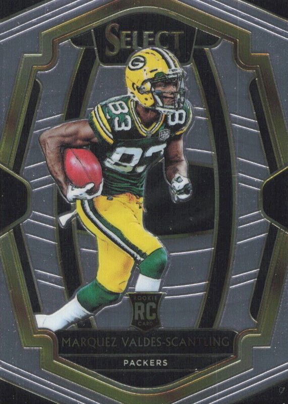 This card is 1 of 27 Marquez Valdes-Scantling's card variations in the 2018 Select set being tracked by Sports Card Investor, including Concourse, Concourse Silver, Premier Level Silver, Concourse Tri-Color /199, and Premier Level Tri-Color /199.