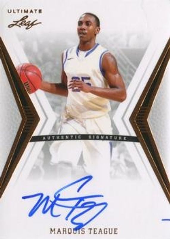 The Marquis Teague 2012 Leaf Ultimate Draft #BA-MT1 Base Rookie card is 1 of 25 Marquis Teague's card variations in the 2012 Leaf Ultimate Draft set being tracked by Sports Card Investor, including Printing Plates Black, Printing Plates Cyan, Printing Plates Magenta, Printing Plates Yellow, and Silver /25.