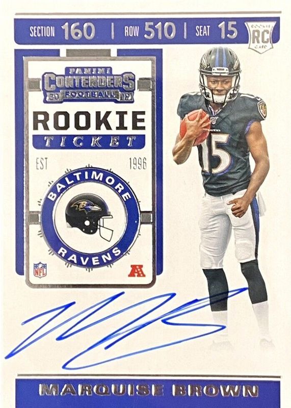 2019 Contenders MARQUISE BROWN Rookie Ticket Variation Auto #107 Ravens