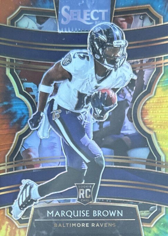 This card is 1 of 35 Marquise Brown's card variations in the 2019 Select set being tracked by Sports Card Investor, including Concourse, Field Level, Concourse Silver, Field Level Silver, and Concourse Tri-Color /199.